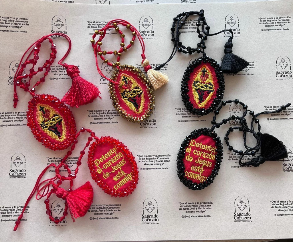 Pulsera del Sagrado Corazón de Jesús con la poderosa inscripción 'Detente, el Sagrado Corazón de Jesús está conmigo'. Un símbolo de protección, fe y devoción, ideal para llevar siempre contigo como signo espiritual y recordatorio de la presencia divina.